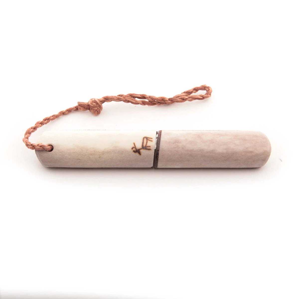 This is a delightful little package consisting of an antler-handled knife with a matching antler sheath. This would be ideal as a pocket knife or a neck knife. The blade is small but still a good size for a wide variety of tasks. There is a braided cord which connects the knife and the sheath, making sure that not only will you not lose it, but the cord slides through the knife handle to keep the sheath firmly in place on the blade. This is a very attractive product and I really like the simplicity and elegance of it.