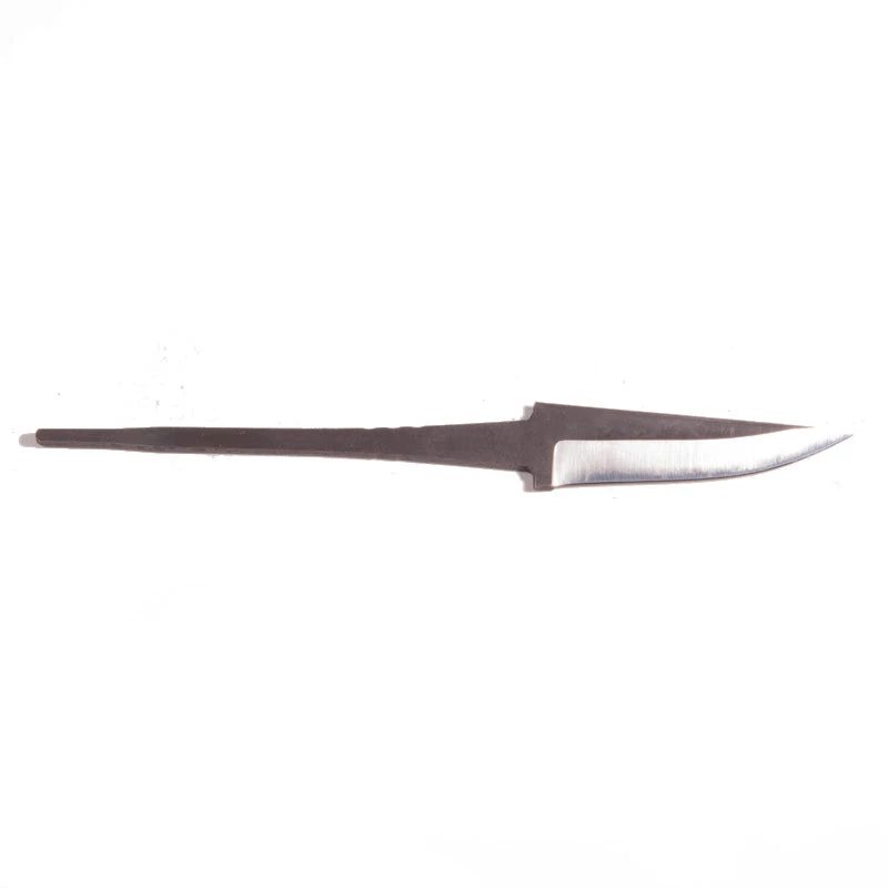 This would be a good blade for a medium-sized puukko knife. The ricasso (the squared portion ar the base of the blade) is not traditional, but does make it easier to get a tight fit between the base of the blade and the bolster/guard, which is important because you don’t want any moisture getting inside your handle.