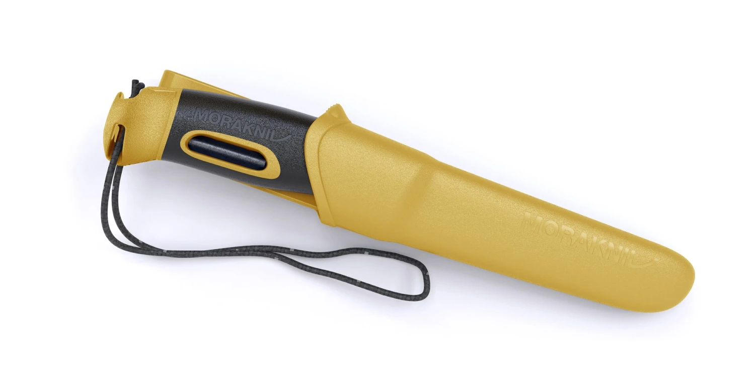 This is a nicely enhanced version of Mora’s mainstay Companion knife. It features a rubberized coating on the handle, and a fire steel which detaches from the pommel, so you can always start a fire without bringing a separate fire starter. The back of the blade is sharply squared off for using the fire steel, which is made from the same material used in Mora’s bushcraft survival knife, and which produces a nice heavy shower of sparks. The knife firmly click-locks into the sheath, and the sheath features both a sturdy belt clip as well as a hole on the end for drainage. This is a great, compact and completely useful package that you should never enter the woods without.