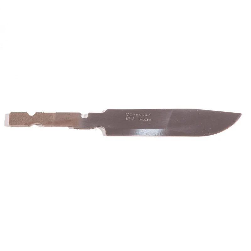 This is the blade from the Mora 2000 knife, which has an interesting drop-point profile which thins out as it approaches the tip, which makes this an excellent choice for making a skinning knife. While not a true “full tang” knife, the tang isn’t a stick but is rather around 50% of the blade width, which would make a very strong, durable knife.