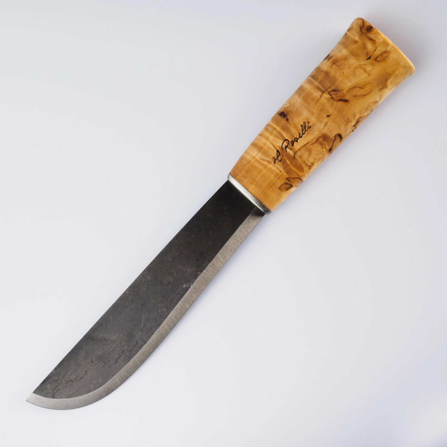 Roselli knives are designed by Heimo Roselli, who began making knives in 1976 and researched ancient bladesmithing techniques to rediscover the secret for making ultra-high-carbon steel. The Roselli knives are highly functional with little to no extra polish.